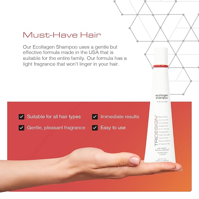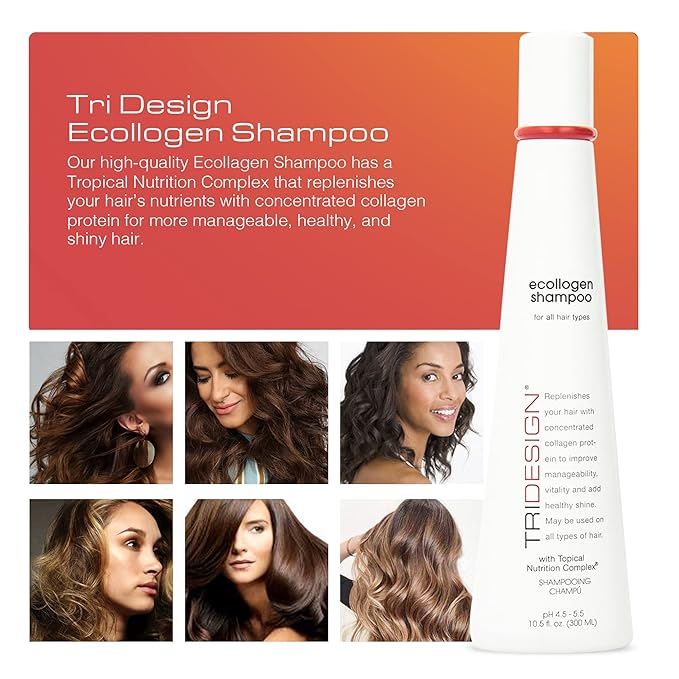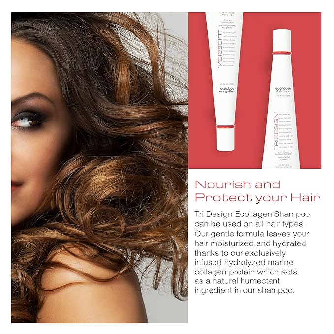 • GENTLE BUT EFFECTIVE: Ecollogen shampoo is perfect for you and your family! This mild shampoo is blended with effective ingredients for damaged hair. It helps moisturize your hair and adds a healthy shine. Tridesign replenishes your hair with concentrated collagen protein, which may improve manageability for all hair types. Give your hair the treatment and care it deserves with our must-have shampoo!