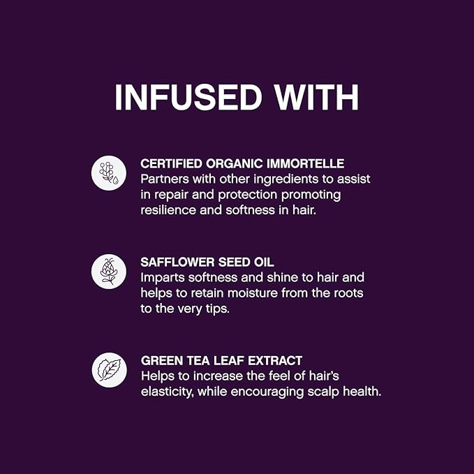 • Immortelle Formulation: This deep conditioning oil is formulated with certified organic Immortelle, known for supporting hair repair and softness