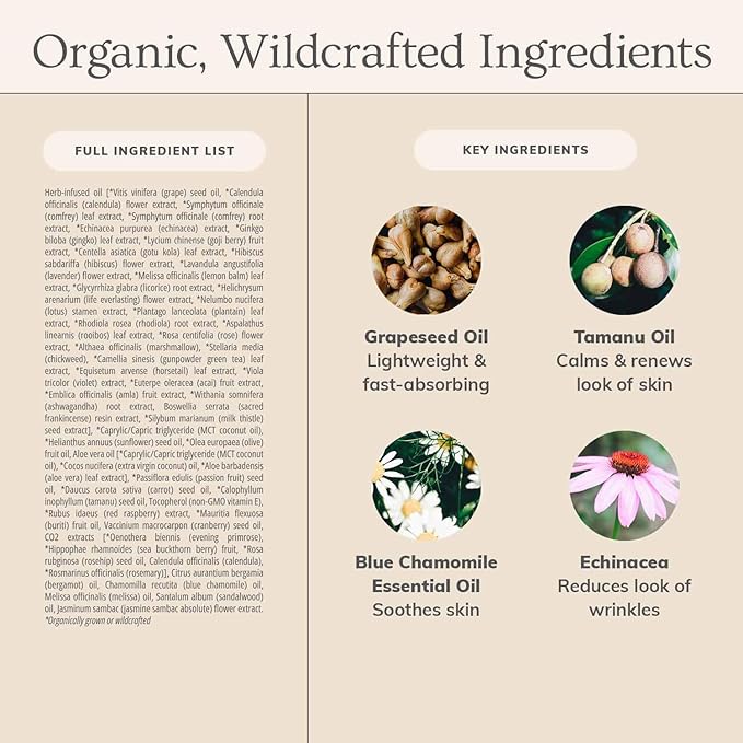• Key Ingredients: Grapeseed Oil, Blue Chamomile Essential Oil, Tamanu Oil, Echinacea