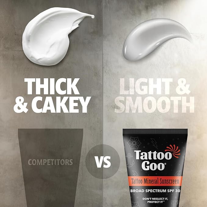 Tattoo Goo Zinc Oxide Mineral Sunscreen SPF 30 – Broad Spectrum UVA/UVB Protection, Tattoo Fade Shield, Non-Greasy, Fragrance-Free, 2 fl oz