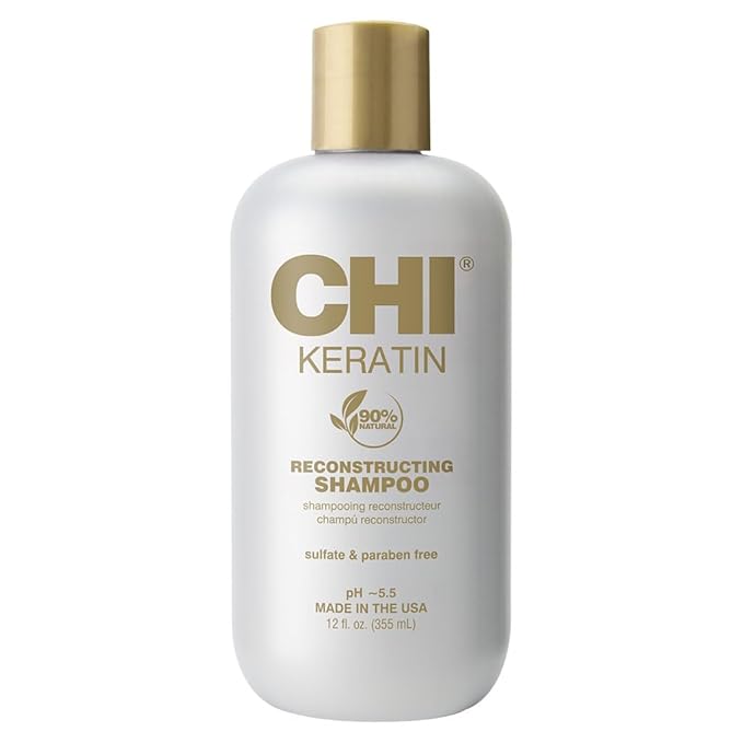 CHI Keratin Reconstructing Shampoo, Delivers Healthier Hair, Adds Shine & Helps Prevent Future Breakage, Sulfate, Paraben, & Cruelty-Free, 12 Oz
