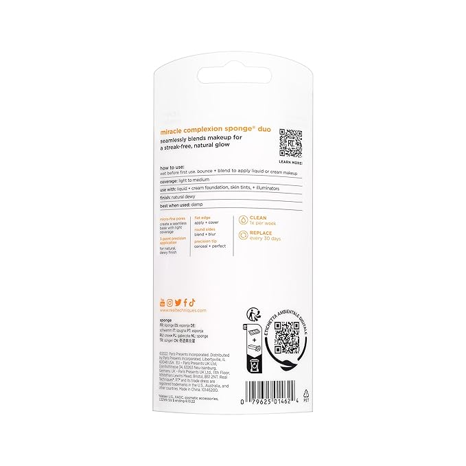 • Includes: (2) Real Techniques Miracle Complexion Sponges to seamlessly bounce and blend makeup for a streak-free, natural, dewy glow. Pack size for easy refills- don’t forget to replace your sponge every 30 days. Never run out by using Subscribe & Save