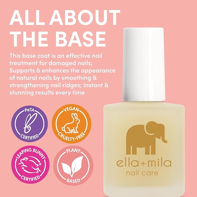 ella+mila All About the Base - Coat Nail Polish - Long-lasting Ridge Filler Base Coat - Nail Care that Helps Smooth & Fill Natural Nails (0.45 fl oz)