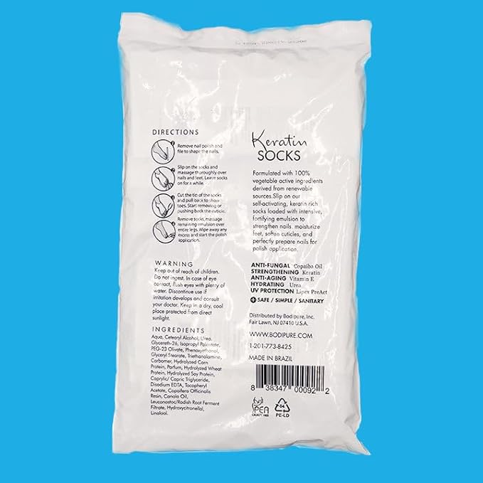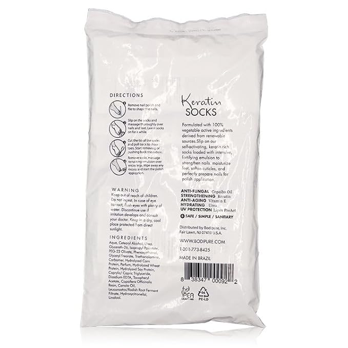 Bodipure All-In-1 Moisturizing Foot Mask, Keratin & Vitamin E Foot Mask for Dry Cracked Feet, Callus & Heel Softening, Easy-to-Use Pedicure Foot Repair, Chemical-free Feet Treatment