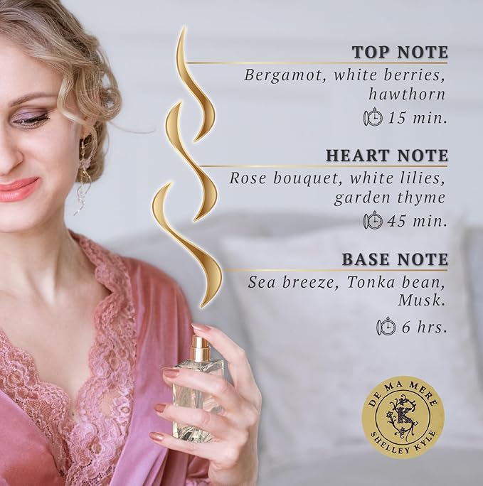 • Heart Note: Rose bouquet, white lilies, garden thyme