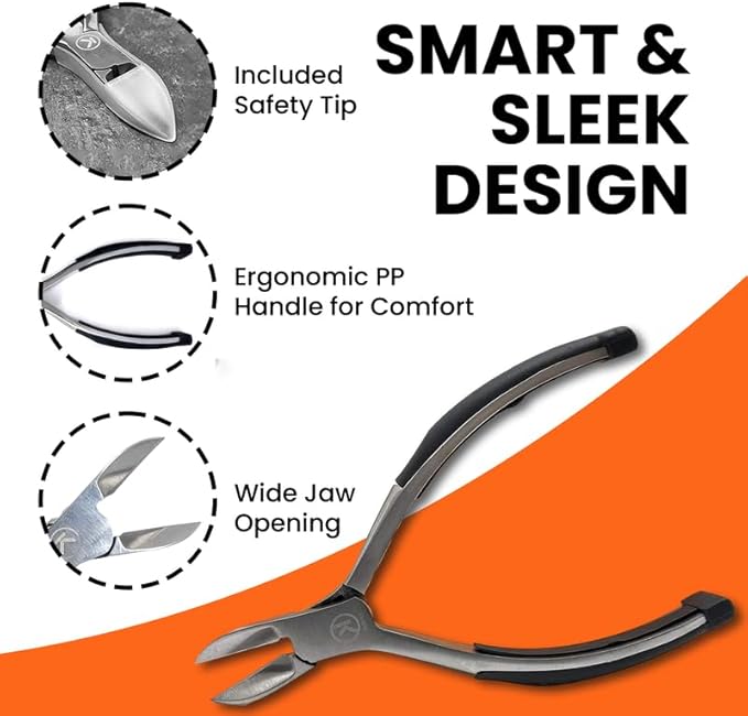 • [Sharp & Precise Cutting] The 2 cm curved stainless steel blade of this toe nail clippers ensures smooth and accurate trimming of thick, ingrown, or fungal toenails, preventing painful nail damage and promoting healthier well-maintained feet