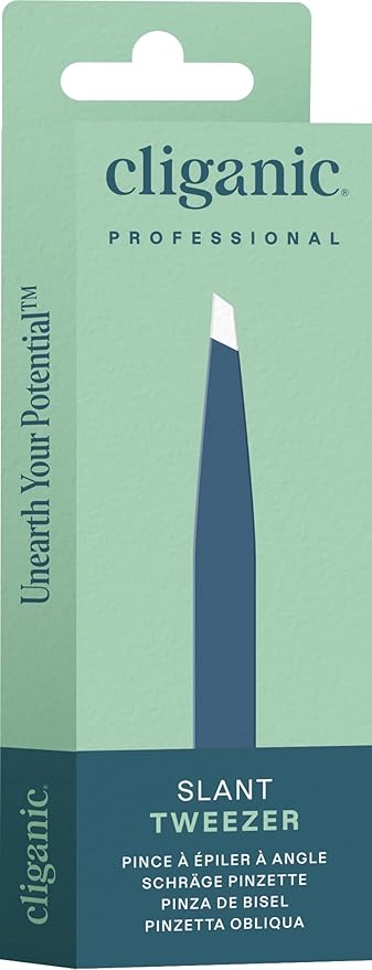 Cliganic Professional Eyebrow Tweezers Slant Tip (Blue) - Precision for Men & Women, Stainless Steel Best for Plucking Chin Facial Hair