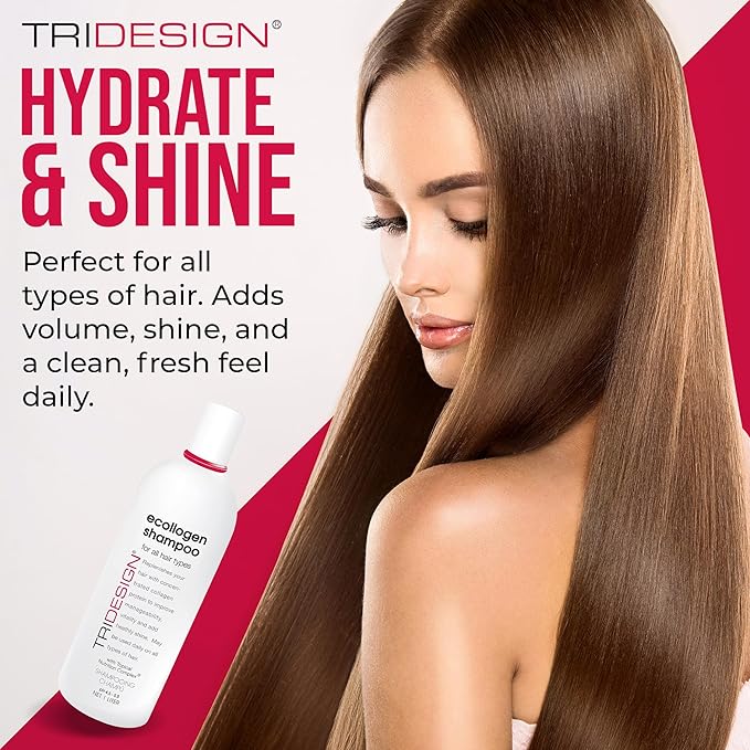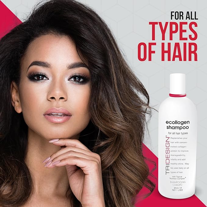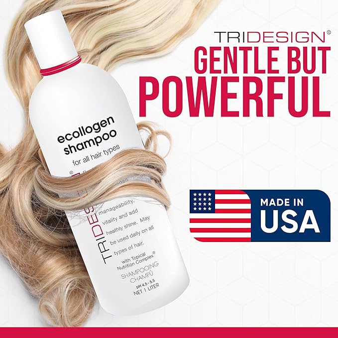 TRI Design Ecollogen Shampoo - Hair Shampoo For Natural Hair - Moisturizing, Hydrating - Gentle Hair Products, Thickening, Volumizing Shampoo - Liter (33.8 oz.)