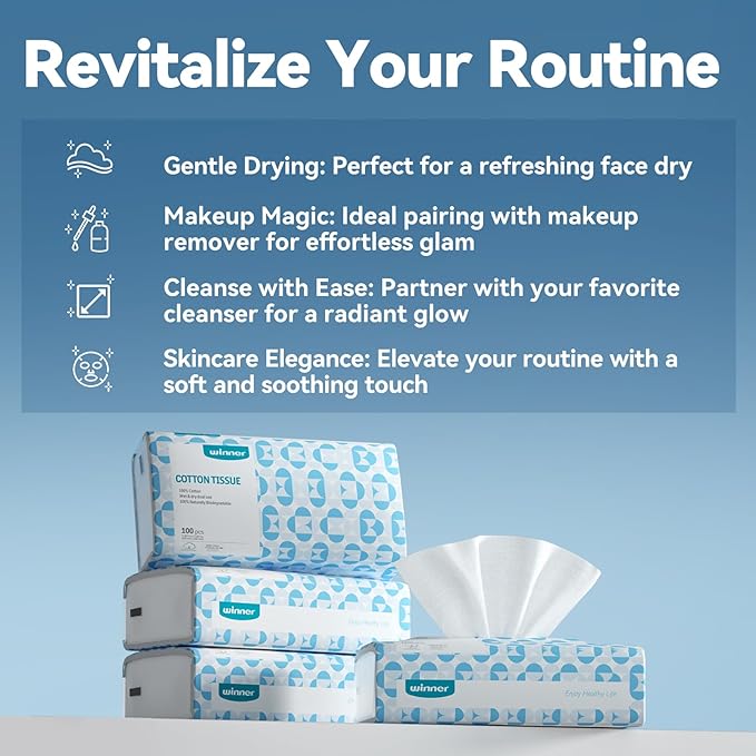Winner Soft Face Towels, 100% USDA Biobased Facial Towels, Unscented Cotton Tissues for Sensitive Skin, OEKO-TEX Certified Face Towelettes Disposable, Makeup Remover Dry Wipes, 600 Ct, Pack of 6