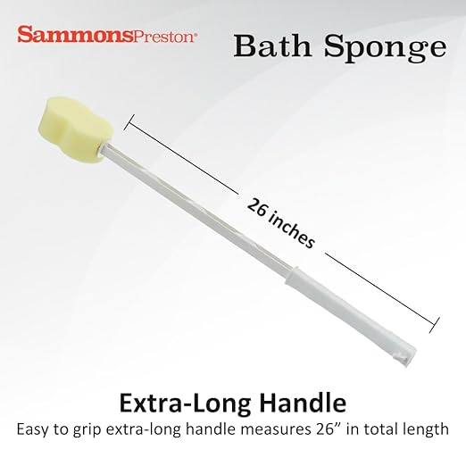 Sammons Preston Bath Sponge, Lightweight Long Handled Washer and Scrubber for Bath and Shower, Extended Reacher Cleaning Aid for Limited Range of Motion, Contour