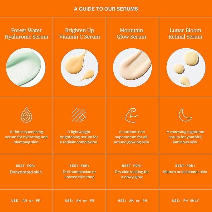 • URSA MAJOR BRIGHTEN UP VITAMIN C SERUM - This natural Vitamin C serum goes deep to provide instant hydration while brightening and smoothing skin’s tone and appearance.