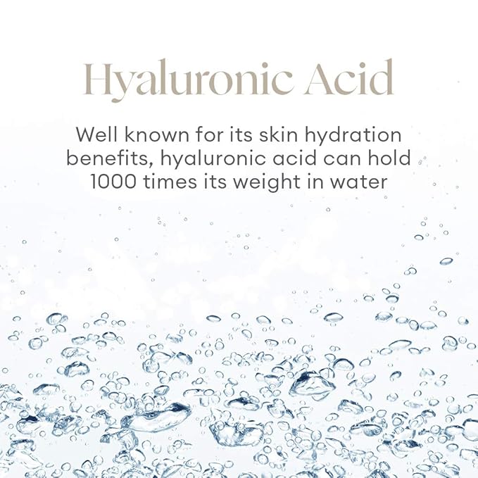 • Formulated with Hyaluronic Acid: Instantly hydrates skin, improving elasticity and reducing appearance of fine lines