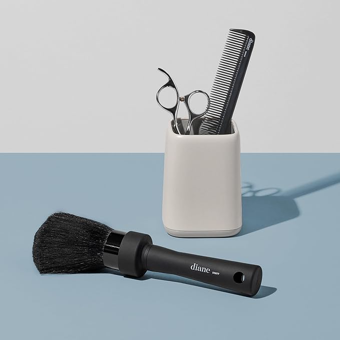 Diane Professional Long Handle Neck Duster Brush for Hair Cutting, Removes Loose Hair from Neckline and Ears, Soft Nylon Bristles, Stand Up Base, 9”