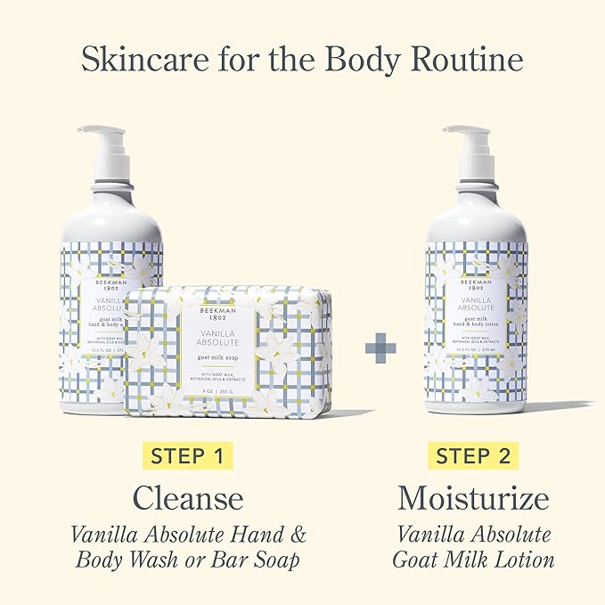 Beekman 1802 Goat Milk Body Lotion, Vanilla Absolute - Scented - 12.5 oz - Deeply Moisturizing With Shea Butter & Jojoba Seed Oil - For Sensitive Skin - Ready for Use, Pump Inserted - Cruelty Free