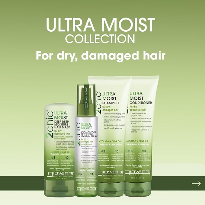 Giovanni 2Chic Ultra-Moist Avocado & Olive Oil Shampoo and Conditioner Set - Moisture & Natural Growth for Men & Women with Moisturizing Aloe Vera, Sulfate Free - 24 Fl Oz (Set of 2)