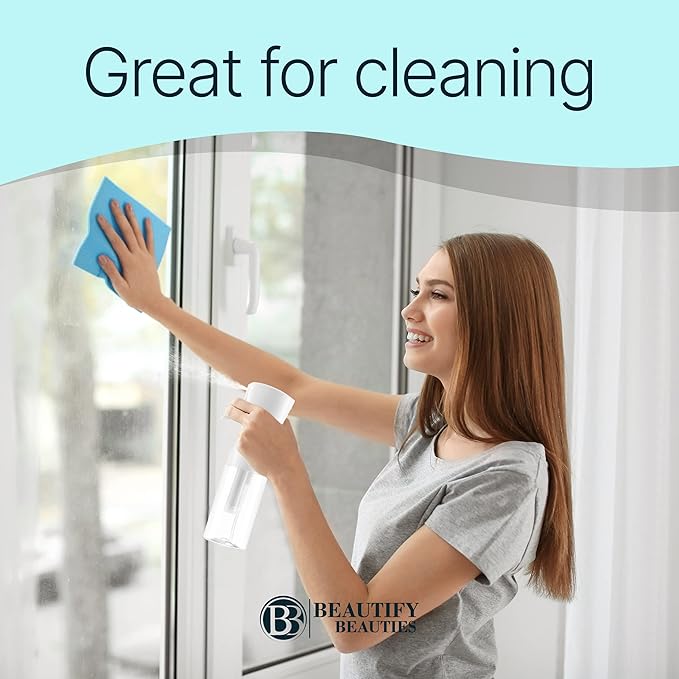 BeautifyBeauties Spray Bottle For Hair – Continuous Mister Spray Bottle for Hairstyling, Cleaning, Plants, Pets, Barbers, Salons, Essential Oil Scents (10.1 Ounce)