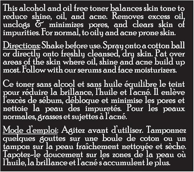 • What It Does: This refreshing alcohol & oil free men's facial toner removes excess oil, unclogs & reduces pores, and clears skin of grime. It can be used in the morning as facial toner or as a mid day "refresher" 'to reduce shine and perk up dull skin.