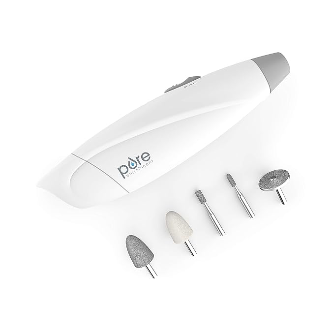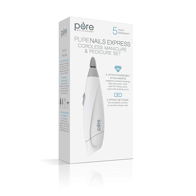 Pure Enrichment PureNails Express Cordless Manicure and Pedicure System - Portable, Battery-Powered Nail File with 5 Interchangeable Attachments, 2 Speeds and Storage Bag - Ideal for Travel & Home