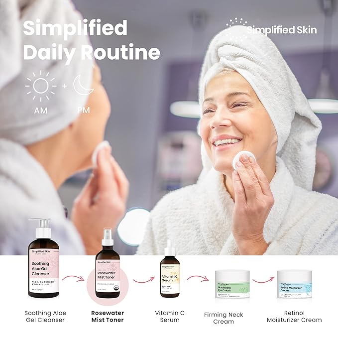 • USDA-Certified Organic Rose Water Spray for Face & Hair: Simplified Skin rosewater spray delivers soothing hydration with every spritz. Made from Bulgarian rose water, it refreshes and revitalizes the skin, hair, and body.