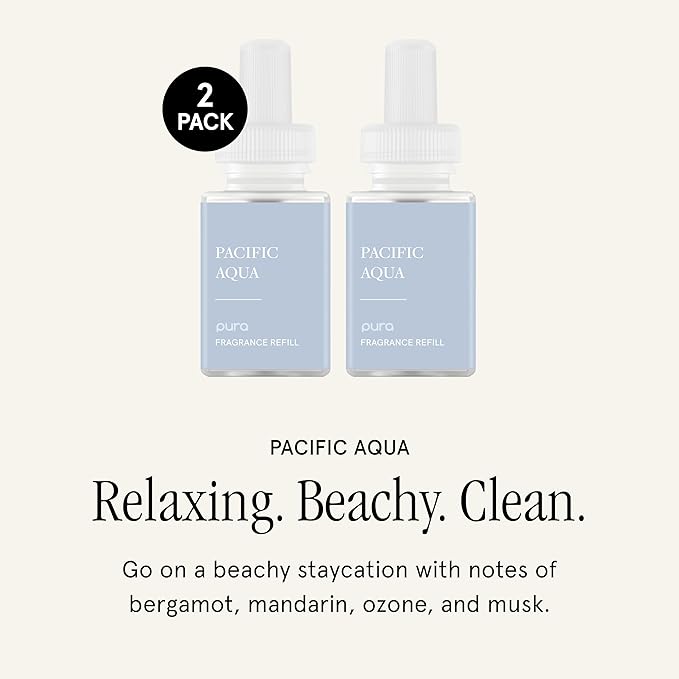 Pura Smart Home Air Diffuser - Smart Air Diffuser - Up to 120-Hours of Luxury Fragrance per Refill - Spring & Summer Fragrance - 2 Pack, Pacific Aqua