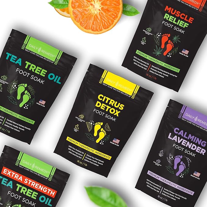 • Revitalize and Detoxify with Nature's Best: Immerse your feet in our citrus epsom salt foot soak, a perfect blend of natural Epsom Salt and Dead Sea Salt infused with a potent mix of MSM and essential oils like Tea Tree, Eucalyptus, Peppermint, Cajuput, Camphor, Rosemary, Coconut Oil, Lemon, Ginger, Lavender, Geranium, Vitamin C, and Vitamin E. Ideal for those seeking a foot detox or body detox foot soak experience.