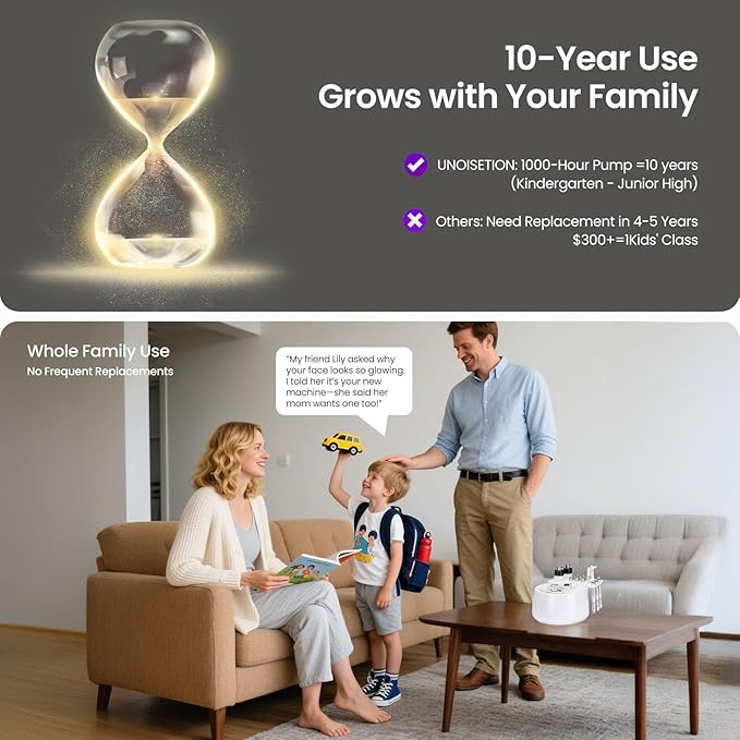 • ๐…๐š๐ฆ๐ข๐ฅ๐ฒ-๐…๐ซ๐ข๐ž๐ง๐๐ฅ๐ฒ ๐ƒ๐ฎ๐ซ๐š๐›๐ข๐ฅ๐ข๐ญ๐ฒ ๐“๐ก๐š๐ญ ๐’๐š๐ฏ๐ž๐ฌ ๐Œ๐จ๐ง๐ž๐ฒ:With a 1000-hour long-lasting air pump, this machine works for up to 10 yearsโ€”enough for you, your partner (who deals with shaving irritation), and even teens with acne-prone skin. The special microcrystalline head inlay tech prevents particle loss, so itโ€™s gentle on your post-stress sensitive skin (thanks to endless kid-related chaos!) and tough enough for the whole family. Skip repeated salon bills or cheap, short-lived toolsโ€”this is one investment that pays off for your household.