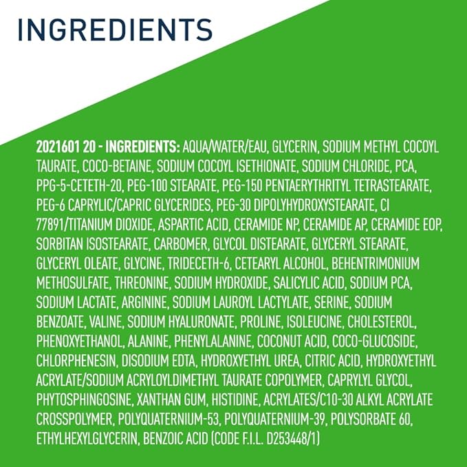 • [ 3 ESSENTIAL CERAMIDES ] Ceramides are found naturally in the skin and make up 50% of the lipids in the skin barrier. All CeraVe products, formulated with three essential ceramides (1, 3, 6-II)to help maintain the skin’s natural barrier.