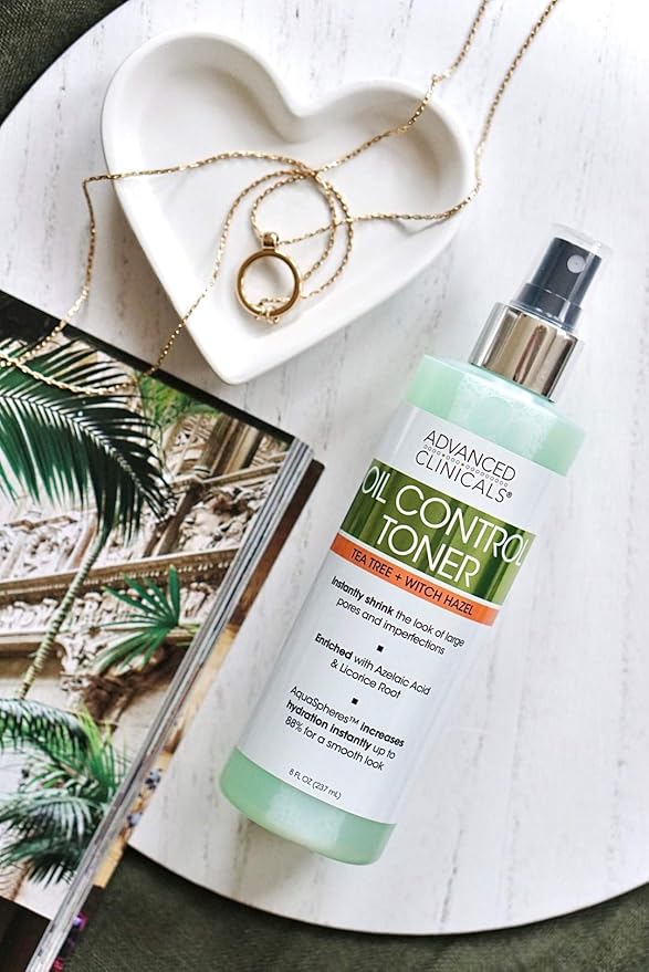 Advanced Clinicals Oil Control Purifying Facial Mist Toner. Hydrating, Non-Greasy Tea Tree Oil, Witch Hazel Toner W/Aloe Vera Face Mist Cleans Pores & Clears Acne All Skin Types, 8 Fl Oz (Pack of 1)