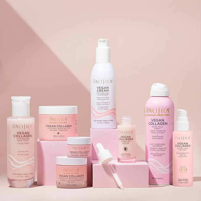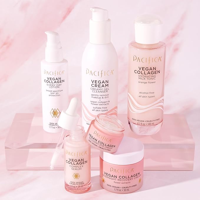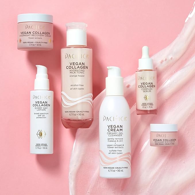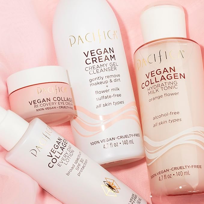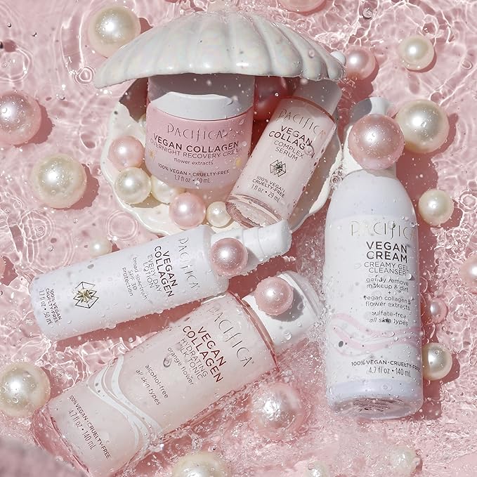 • Hydrating Vegan Collagen Cleanser – Gently washes away makeup, oil, and impurities while replenishing moisture. Enriched with vegan collagen to help boost elasticity and anti-aging benefits, this foaming facial cleanser promotes a plump, youthful-looking complexion with every wash.