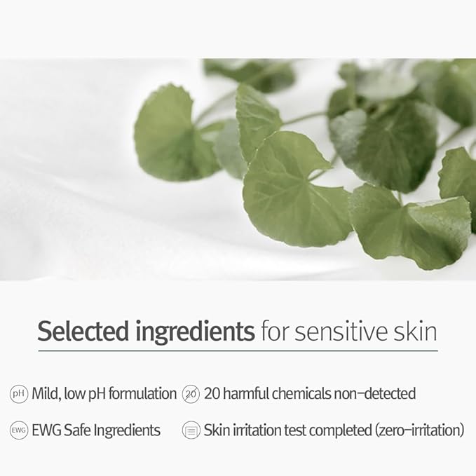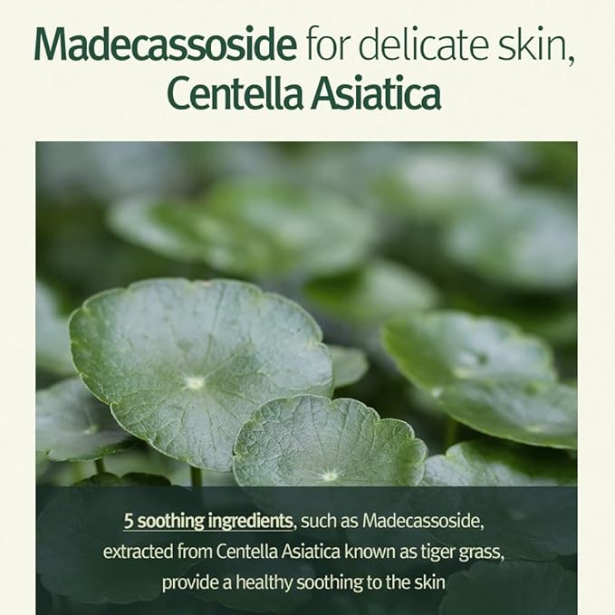• RECOMMENDED FOR IRRITATED AND SENSITIVE SKIN TYPES - Through Centella Asiatica extract (also called as Cica or Madecassoside), Tea Tree and Lonicera Japonica Flower Extract, known as a representative soothing ingredient, that quickly