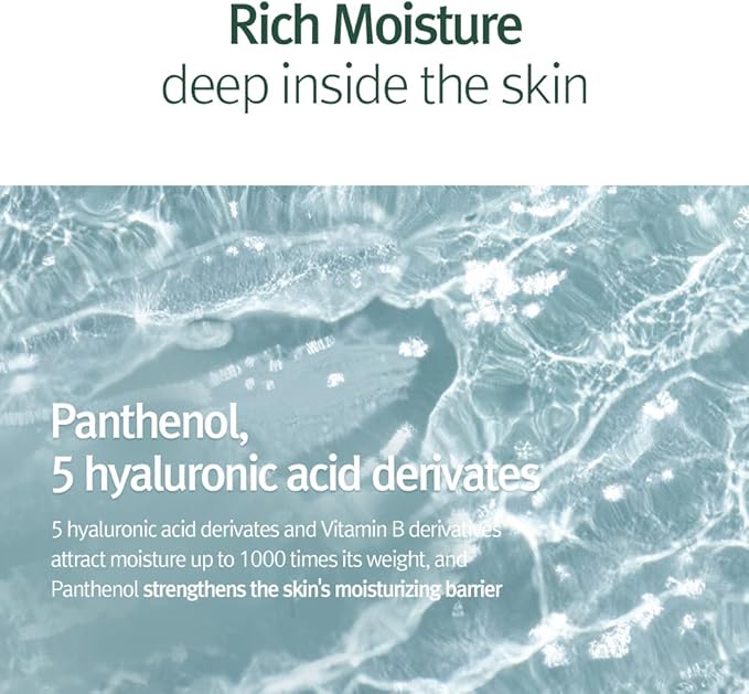 • STRONG MOISTURIZING - Panthenol and 5 Hyaluronic Acids attract moisture up to 1000 times its weight, provide a deep hydrating feeling by quickly supplying moisture to dry skin and White Willow Bark, AHA and PHA ingredients