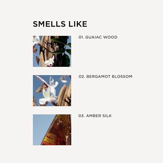 • Layered Scent Profile - Top notes of bergamot blossom and ozone air, middle notes of sheer muguet, jasmine petals and cedar leaf, and base notes of ivory musk, amber silk and guaiac wood.