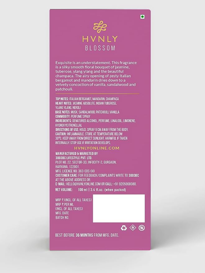 • The top notes of Blossom Women's Perfume feature a refreshing blend of Bergamot, zesty Pink Peppercorn, and vibrant Blackcurrant, creating an invigorating and captivating opening aroma.