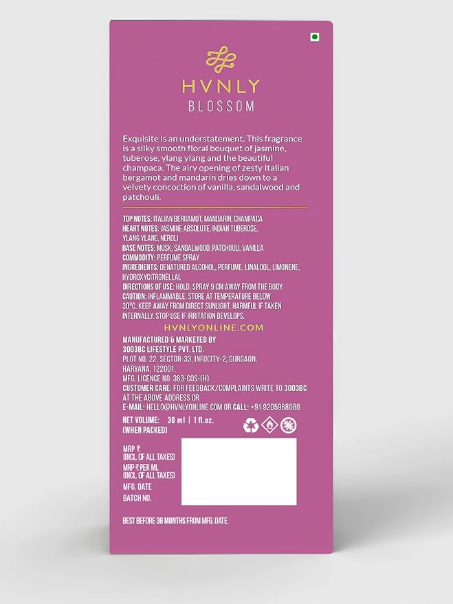 • The top notes of Blossom Women's Perfume feature a refreshing blend of Bergamot, zesty Pink Peppercorn, and vibrant Blackcurrant, creating an invigorating and captivating opening aroma.