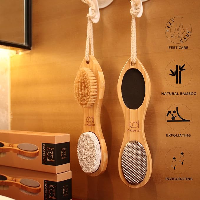 4 in 1 pedicure tool:multi-purpose design,no need more individual foot care tools,1 pack is enough.Including stainless steel foot file,natural boar bristles cleaning brush,pumice stone and sand paper.Work well for dead skin,dry feet or wet feet with gentle or heavy foot exfoliating.
