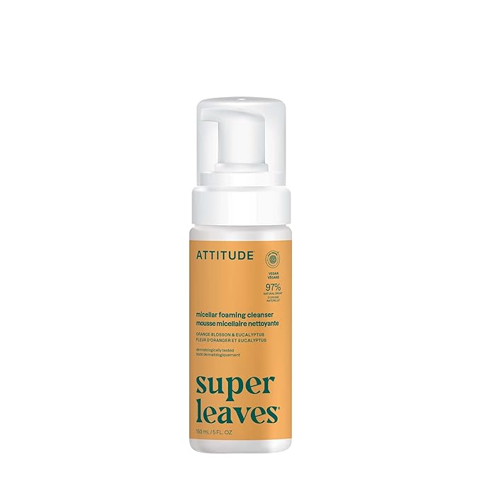 ATTITUDE Micellar Foaming Facial Cleanser, EWG Verified, Dermatologically Tested, Plant and Mineral-Based, Vegan, Orange Blossom & Eucalyptus Scent, 5 Fl Oz