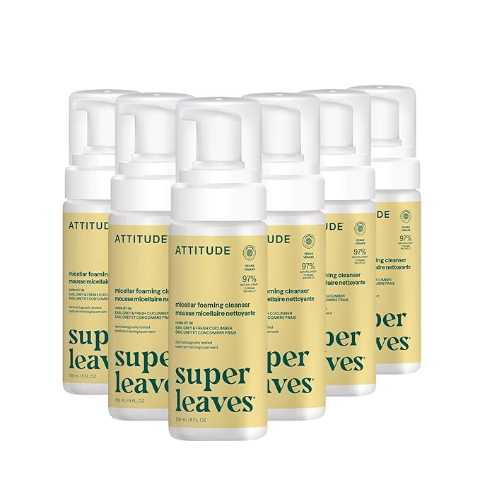 ATTITUDE Micellar Foaming Facial Cleanser, EWG Verified, Dermatologically Tested, Plant and Mineral-Based, Vegan, Earl Grey & Cucumber Scent, 5 Fl Oz (Pack of 6)