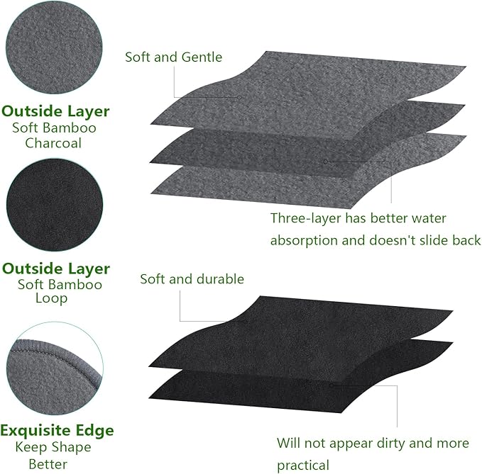• SOFT & NATURAL BAMBOO REUSABLE COTTON CHARCOAL ROUNDS PADS-Made of Special Fabric Bamboo, super soft pads are great to do a gentle exfoliation to keep smoother skin, clean deep into your pores and effectively pull all of makeup, sunscreen, chemicals, cosmetics out, it is great facial remover pads, eye shadow makeup remover, mascara makeup remover, lipstick etc..