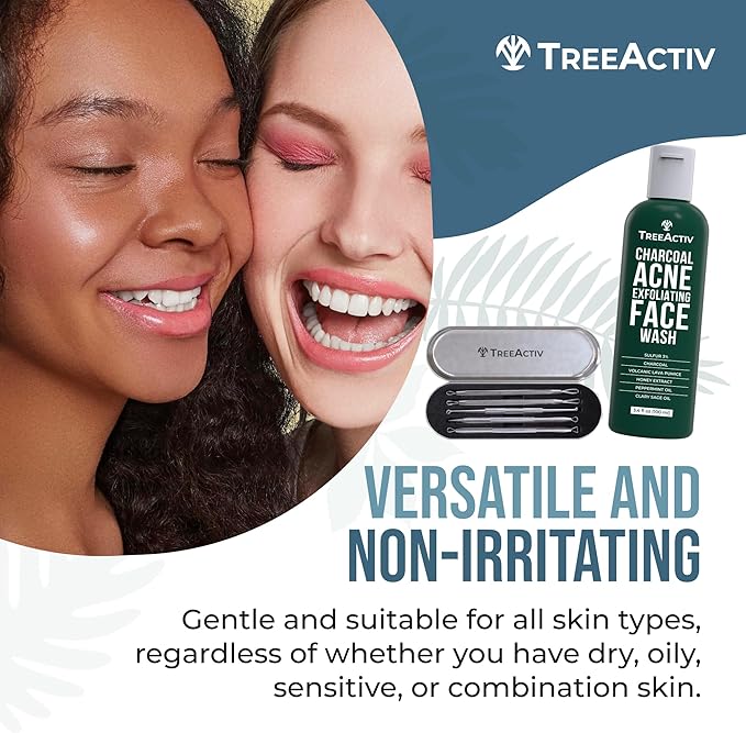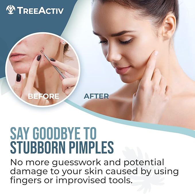 TreeActiv Pimple Popper Tool Kit with Face Wash and Acne Patches, Professional Blackhead Remover Tools Facial Kit, Stainless Steel Blackhead Extractor Tool, Blemish Blackhead & Whitehead Pimple Extr