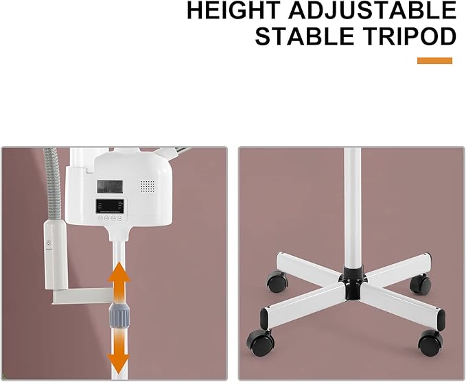 • ROTARY AND MOVEABLE - 360 degree rotary spray pipe allows to moisturize your face; Rolling wheels makes it convenient to move this facial skin care machine around the room. There is an aroma diffuser at the nozzle mouth, you can put the aroma diffuser and use it