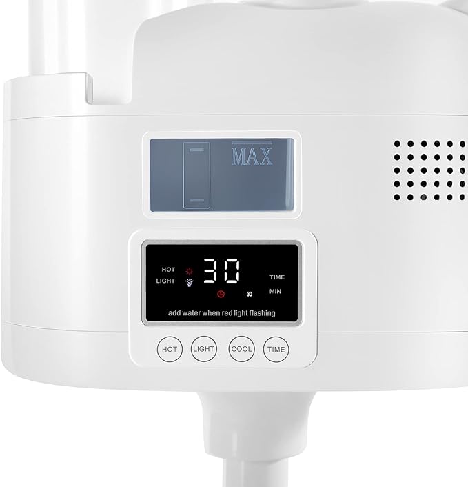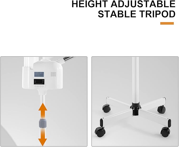 • ROTARY AND MOVEABLE - 360 degree rotary spray pipe allows to moisturize your face when you are sitting or lying; Rolling wheels makes it convenient to move this facial skin care machine around the room