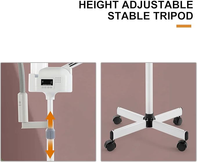 • Easy To Use - Facial steamer machine with 4-leg wheeled stable stand base that allows you to move around in the salon freely. Flexible arm can rotate left and right with 360 degrees and flip up and down 180 degrees. High adjustable from 40"-48"