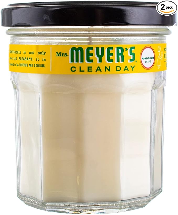 MRS. MEYER'S CLEAN DAY Aromatherapy Candle, 35 Hour Burn Time, Made with Soy Wax and Essential Oils, Honeysuckle, 7.2 Oz, Pack of 2