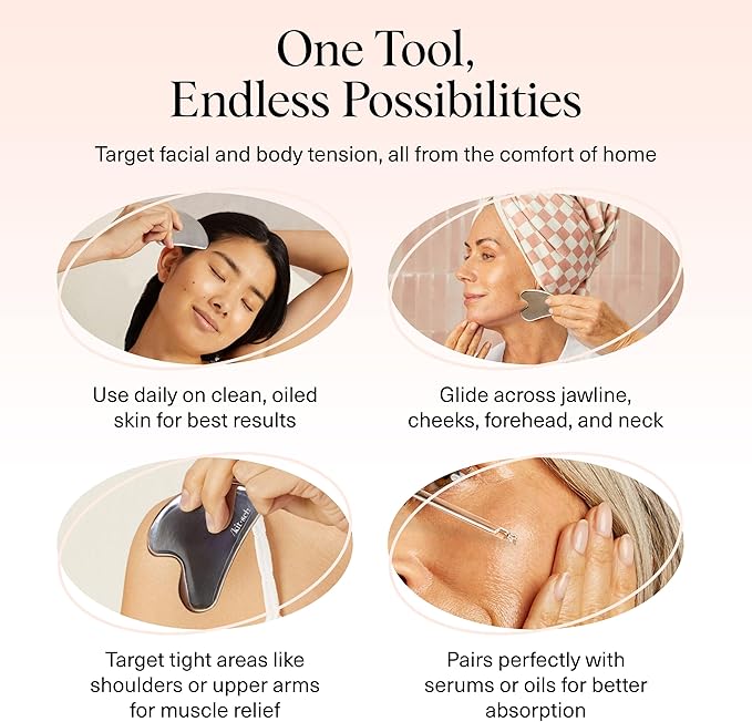 • ELEGANT & MODERN DESIGN: With a sleek, minimalist aesthetic, this gua sha tool is both functional and stylish. A standout guasha accessory for any vanity, perfect for gifting or upgrading your self-care ritual. Packaging may vary.