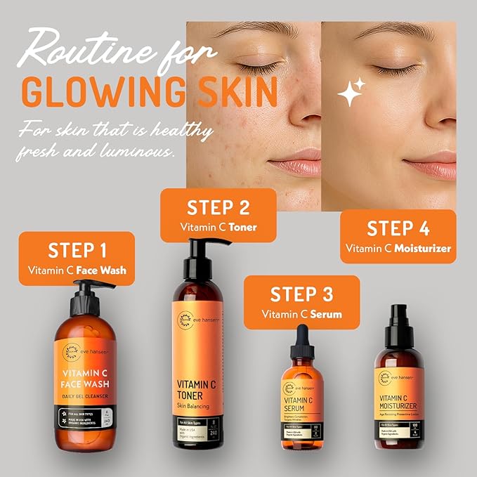 • Meet Complete Product Line: The Eve Hansen Vitamin C Face Cleanser, Toner, and Moisturizer are designed to work together, enhancing the overall effectiveness of your skincare routine.
