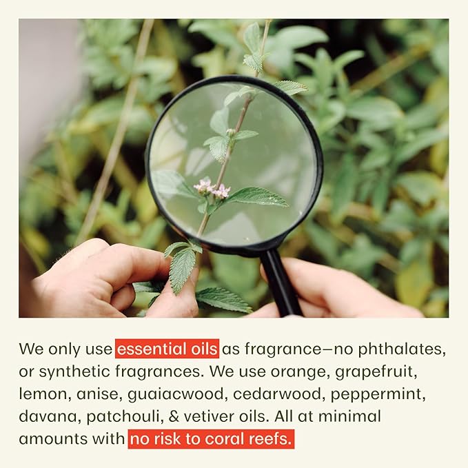 • EFFECTIVE HEALTHY INGREDIENTS – No chemical sunscreen filters, benzene free, cruelty-free, vegan, PABA-free, GMO-free, paraben-free, no synthetic colors or unhealthy ingredients. No synthetic fragrances added, only a subtle citric scent from natural essential oils.
