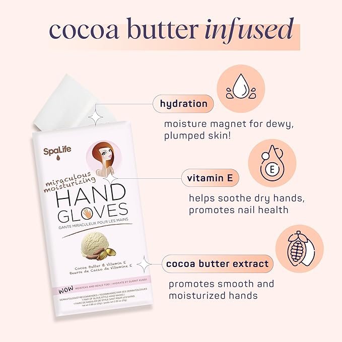 • MOISTURIZING HANDS: Give your hardworking hands the care they deserve with SpaLife Moisturizing Hand Gloves. This indulgent treatment provides your hands with the moisturizing ingredients they need, leaving them soft, supple, and ready to face the next day's challenges.