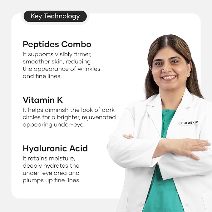 Cureskin Under Eye Gel for Dark Circles for Women and Men | Bio-Peptide Under Eye Gel to Reduce Dark Circles, Puffiness & Wrinkles | Under Eye Cream for Men and Women