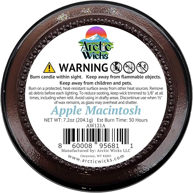 • This fall, indulge in the Arctic Wicks Apple Macintosh candle you never knew you needed but won’t be able to live without. Our Apple Macintosh candle instantly transports you to an orchard at harvest time with the mouthwatering aroma of crisp green leaves, juicy pear, and freshly picked Macintosh apples. Subtle base notes of vanilla and cedarwood add a warm, comforting touch, making this candle the perfect companion for cool autumn days and cozy nights.