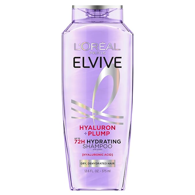 L'Oreal Paris Elvive Hyaluron Plump Hydrating Shampoo for Dehydrated, Dry Hair Infused with Hyaluronic Acid Care Complex, Paraben-Free, 12.6 Fl Oz